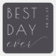This elegant wedding sticker design features a minimalist and sophisticated style with clean, modern typography. The primary motif is the heartfelt phrase "Best Day Ever," set against a dark background that adds a touch of timeless elegance. The color palette is simple yet striking, using white text on a deep gray backdrop to create a classic contrast. Perfect for celebrating your special day, this design exudes joy and romance, making it ideal for adorning invitations or keepsake boxes. Its customizable nature allows you to personalize it further, capturing the essence of your unforgettable moment.