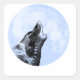 Pegatina Cuadrada Lobo fantasma aullando en la luna