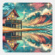 Pegatina Cuadrada Log Cabin on the Beach Ai Art