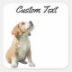 Pegatina Cuadrada Looking Up Puppy-2 | Personalized Custom Text