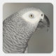 Retrato de un bello loro gris africano del Congo sobre un fondo gris. Tiene plumas grises de vieiras y un pico negro. El nombre científico es Psittacus erithacus.