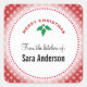 Este pegatina cuadrado presenta un fondo rojo oscuro con pequeños copos de nieve blancos, un círculo blanco acentuado con Navidades verdes holly y el texto: MERRY CHRISTMAS de la cocina de: (texto de personalizable para que añadas tu nombre). Este pegatina personalizado es perfecto para sellar artículos de Navidad que has horneado como regalo para una persona especial.