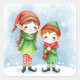 Pegatina Cuadrada Los elfos de los pequeños y caprichosos Navidades