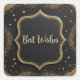 Pegatina Cuadrada Los mejores deseos del Purpurina negro dorado