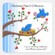Si no estás haciendo una diferencia, ¿qué diferencia haces? -Daniel J. Radcliffe. Un diseño pegatina cálido y colorido con un par de pájaros azules brillantes, ramas y hojas de árboles coloridos, un bonito nido florido y palabras inspiradoras. Personalizar cambiando el campo de texto si quieres expresar tus propios pensamientos, o váyanse como se muestra. Haría un gran regalo de agradecimiento para un voluntario especial.
