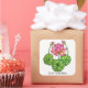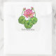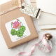 Pegatina Cuadrada Loto rosa acuarela con manchas y hojas