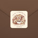Pegatina Cuadrada Love is Brewing Brown Floral Coffee Heart Bridal