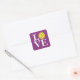 Pegatina de pickleball cuadrada con letras apiladas que deletrean "LOVE" con una pelota de pickleball en lugar de la O. Líneas de nombre y texto personalizables. Disponible en una selección seleccionada de colores enérgicos. Embellimiento perfecto para papelería personal - añade a tarjetas y paquetes de regalo.