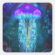 Las medusas radiantes y luminiscentes que forman parte del agua y forman parte del espacio. Esta es una obra de arte visionario muy vibrante y detallada, llena de texturas, geometría y acentos surrealistas.