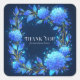 Add a touch of celestial magic to your correspondence with this elegant floral thank you sticker. The design features a deep, starry navy blue background, creating a stunning canvas for a beautiful, square floral wreath. Luminous, glowing blue hydrangeas, appearing lit from within, are artfully woven with delicate, fine-lined gold leaves, golden stems, and deep blue foliage. The entire scene is dusted with a magical spray of blue and gold glitter, like distant stars, adding to the enchanted, celestial feel. These stickers are perfect for businesses that want to add a touch of sophisticated magic, such as astrologers or spiritual guides to seal readings, boutique candle makers for luxury packaging, high-end florists for bouquet wrapping, or event planners for celestial-themed weddings. This versatile design can also be used to beautifully seal envelopes for galas or milestone birthdays, or as a sophisticated accent on party favors and gift wrapping.