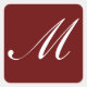 Pegatina Cuadrada M Monograma Blanco inicial sobre rojo oscuro,