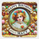 Pegatina Cuadrada MACY ~ CUMPLEAÑOS FELIZ ~ Chica de la cosecha ~