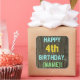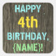 Este divertido diseño de pegatinas con temática de cumpleaños incluye un mensaje como "FELIZ CUMPLEAÑOS, {NAME}!", donde el nombre se puede personalizar. El fondo está decorado con un estilo rústico, marrón y falso de aspecto de grano de madera. El texto del mensaje personalizado presenta colores como azul, amarillo y verde, y tiene un aspecto inspirado en el de las letras pintadas y estampadas. Pegatinas como estos podrían tal vez ser dados como regalo, o quizás ser usados como decoraciones en una fiesta de cumpleaños que se lleva a cabo para alguien que está celebrando su cuarto cumpleaños. [~Z0000296]