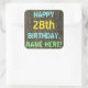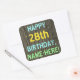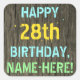 Este divertido diseño de pegatina con temática de cumpleaños incluye un mensaje como "FELIZ CUMPLEAÑOS 28, NOMBRE - AQUÍ!", donde el nombre puede ser personalizado. El fondo está decorado con un estilo rústico, marrón y falso de aspecto de grano de madera. El texto del mensaje de personalizable presenta colores como azul, amarillo y verde, y tiene un aspecto inspirado en el de las letras pintadas y estampadas. Pegatinas como estos podrían tal vez ser dados como regalo, o quizás ser usados como decoraciones en una fiesta de cumpleaños que se lleva a cabo para alguien que está celebrando su vigésimo octavo cumpleaños. [~Z0000296]