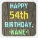Este divertido diseño de pegatinas con temática de cumpleaños incluye un mensaje como "¡FELIZ 54º CUMPLEAÑOS,<NAME>!", donde el nombre puede ser personalizado. El fondo está decorado con un estilo rústico, marrón y falso de aspecto de grano de madera. El texto del mensaje personalizado presenta colores como azul, amarillo y verde, y tiene un aspecto inspirado en el de las letras pintadas y estampadas. Pegatinas como estos podrían ser dados como regalo, o quizás ser usados como decoraciones en una fiesta de cumpleaños que se lleva a cabo para alguien que está celebrando su cincuenta y cuatro años. [~Z0000296]