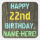 Este divertido diseño de pegatina con temática de cumpleaños incluye un mensaje como "FELIZ 22 cumpleaños, NOMBRE - AQUÍ!", donde el nombre puede ser personalizado. El fondo está decorado con un estilo rústico, marrón y falso de aspecto de grano de madera. El texto del mensaje personalizado presenta colores como azul, amarillo y verde, y tiene un aspecto inspirado en el de las letras pintadas y estampadas. Pegatinas como estos podrían tal vez ser dados como regalo, o quizás ser usados como decoraciones en una fiesta de cumpleaños que se lleva a cabo para alguien que está celebrando su vigésimo segundo cumpleaños. [~Z0000296]