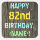 Este divertido diseño de pegatinas con temática de cumpleaños incluye un mensaje como "¡FELIZ CUMPLEAÑOS 82,<NAME>!", donde el nombre puede ser personalizado. El fondo está decorado con un estilo rústico, marrón y falso de aspecto de grano de madera. El texto del mensaje de personalizable presenta colores como azul, amarillo y verde, y tiene un aspecto inspirado en el de las letras pintadas y estampadas. Pegatinas como estos podrían tal vez ser dados como regalo, o quizás ser usados como decoraciones en una fiesta de cumpleaños organizada para alguien que está celebrando su ochenta segundo cumpleaños. [~Z0000296]