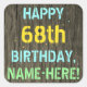Este divertido diseño de pegatina con temática de cumpleaños incluye un mensaje como "FELIZ CUMPLEAÑOS 68, NOMBRE - AQUÍ!", donde el nombre puede ser personalizado. El fondo está decorado con un estilo rústico, marrón y falso de aspecto de grano de madera. El texto del mensaje de personalizable presenta colores como azul, amarillo y verde, y tiene un aspecto inspirado en el de las letras pintadas y estampadas. Pegatinas como estos podrían tal vez ser dados como regalo, o quizás ser usados como decoraciones en una fiesta de cumpleaños que se lleva a cabo para alguien que está celebrando su sexagésimo octavo cumpleaños. [~Z0000296]