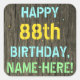 Este divertido diseño de pegatina con temática de cumpleaños incluye un mensaje como "FELIZ 88º CUMPLEAÑOS, NOMBRE - AQUÍ!", donde el nombre puede ser personalizado. El fondo está decorado con un estilo rústico, marrón y falso de aspecto de grano de madera. El texto del mensaje de personalizable presenta colores como azul, amarillo y verde, y tiene un aspecto inspirado en el de las letras pintadas y estampadas. Pegatinas como estos podrían tal vez ser dados como regalo, o quizás ser usados como decoraciones en una fiesta de cumpleaños que se lleva a cabo para alguien que está celebrando su ochenta y ocho cumpleaños. [~Z0000296]