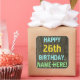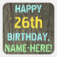 Este divertido diseño de pegatina con temática de cumpleaños incluye un mensaje como "FELIZ CUMPLEAÑOS 26, NOMBRE - AQUÍ!", donde el nombre puede ser personalizado. El fondo está decorado con un estilo rústico, marrón y falso de aspecto de grano de madera. El texto del mensaje personalizado presenta colores como azul, amarillo y verde, y tiene un aspecto inspirado en el de las letras pintadas y estampadas. Pegatinas como estos podrían tal vez ser dados como regalo, o quizás ser usados como decoraciones en una fiesta de cumpleaños que se lleva a cabo para alguien que está celebrando su vigésimo sexto cumpleaños. [~Z0000296]