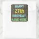 Este divertido diseño de pegatina con temática de cumpleaños incluye un mensaje como "FELIZ CUMPLEAÑOS 27, NOMBRE - AQUÍ!", donde el nombre puede ser personalizado. El fondo está decorado con un estilo rústico, marrón y falso de aspecto de grano de madera. El texto del mensaje de personalizable presenta colores como azul, amarillo y verde, y tiene un aspecto inspirado en el de las letras pintadas y estampadas. Pegatinas como estos podrían tal vez ser dados como regalo, o quizás ser usados como decoraciones en una fiesta de cumpleaños que se lleva a cabo para alguien que está celebrando su vigésimo séptimo cumpleaños. [~Z0000296]