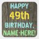 Este divertido diseño de pegatina con temática de cumpleaños incluye un mensaje como "FELIZ CUMPLEAÑOS 49, NOMBRE - AQUÍ!", donde el nombre puede ser personalizado. El fondo está decorado con un estilo rústico, marrón y falso de aspecto de grano de madera. El texto del mensaje de personalizable presenta colores como azul, amarillo y verde, y tiene un aspecto inspirado en el de las letras pintadas y estampadas. Pegatinas como estos podrían tal vez ser dados como regalo, o quizás ser usados como decoraciones en una fiesta de cumpleaños que se lleva a cabo para alguien que está celebrando su cumpleaños cuarenta y nueve. [~Z0000296]