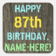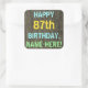 Este divertido diseño de pegatina con temática de cumpleaños incluye un mensaje como "FELIZ 87 cumpleaños, NOMBRE AQUÍ!", donde el nombre puede ser personalizado. El fondo está decorado con un estilo rústico, marrón y falso de aspecto de grano de madera. El texto del mensaje personalizado presenta colores como azul, amarillo y verde, y tiene un aspecto inspirado en el de las letras pintadas y estampadas. Pegatinas como estos podrían tal vez ser dados como regalo, o quizás ser usados como decoraciones en una fiesta de cumpleaños que se lleva a cabo para alguien que está celebrando su ochenta y siete cumpleaños. [~Z0000296]