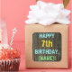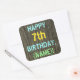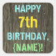 Este divertido diseño de pegatinas con temática de cumpleaños incluye un mensaje como "FELIZ 7° CUMPLEAÑOS, {NOMBRE}!", donde el nombre se puede personalizar. El fondo está decorado con un estilo rústico, marrón y falso de aspecto de grano de madera. El texto del mensaje de personalizable presenta colores como azul, amarillo y verde, y tiene un aspecto inspirado en el de las letras pintadas y estampadas. Pegatinas como estos podrían tal vez ser dados como regalo, o quizás ser usados como decoraciones en una fiesta de cumpleaños que se lleva a cabo para alguien que está celebrando su séptimo cumpleaños. [~Z0000296]