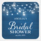 Pegatina de la plaza Rustic Bridal Shower con luces en tarros de máscaras y cuerdas de luces con la palabra "ducha de novia" en un fondo de patrón de madera azul. Es el pegatina perfecto para una ducha de novia rústica o rural. Consulta la invitación coincidente y elementos como pegatinas y sellos aquí https://www.zazzle.com/collections/rustic_wood_mason_jars_and_lights-119202204970019494?rf=238364477188679314 Personalízalo reemplazando el texto del marcador de posición para añadir tu información. Para obtener más opciones, haga clic en el botón "Personalizar". *Tenga en cuenta que la marca de agua Zazzle que aparece en la vista previa del zoom NO aparecerá en el producto impreso final. © Rosewood y Citrus
