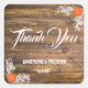 Este rústico pegatina de madera y flores gracias a la boda es perfecto para una moderna recepción nupcial. El diseño de la madera de granero presenta un diseño de fondo rústico. Personalice las etiquetas del pegatina con sus nombres, el evento (si procede) y la fecha. Estos pegatinas pueden ser usados para una boda, una ducha de novia o cualquier evento.