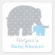 Pegatina Cuadrada Madre y niño elefante ducha azul y gris