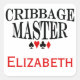Pegatina de los derechos de los de los derechos de los crujientes personalizados, texto negro con los símbolos de los trajes de tarjetas de colores de pala, corazón, club y diamante sobre blanco sólido. Usar la plantilla para personalizar con su nombre o mensaje en letra roja