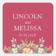 Pegatina Cuadrada Magenta, Peach y Boda Floral Blanco