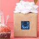 Add a touch of celestial magic to your correspondence with this elegant floral thank you sticker. The design features a deep, starry navy blue background, creating a stunning canvas for a beautiful, square floral wreath. Luminous, glowing blue flowers, reminiscent of chrysanthemums, appear to be lit from within. They are artfully woven with delicate, fine-lined gold leaves and deep blue foliage. The entire scene is dusted with a magical spray of blue and gold glitter, like distant stars, adding to the enchanted, celestial feel. A minimalist, thin gold square frame provides a sophisticated border for your message. These stickers are perfect for businesses that want to add a touch of sophisticated magic, such as astrologers or spiritual guides to seal readings, boutique candle makers for luxury packaging, high-end florists for bouquet wrapping, or event planners for celestial-themed weddings. This versatile design can also be used to beautifully seal envelopes for galas or milestone birthdays, or as a sophisticated accent on party favors and gift wrapping.