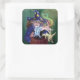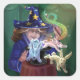 Pegatina Cuadrada Magician sacando conejos de un Gorra