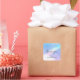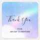 Gracias pegatinas con una suave y encantadora imagen de fondo. Tonos azules y nubes rosas con un arcoiris mágico.