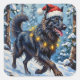Pegatina Cuadrada Majestic Belgian Shepherd Snow Forest Christmas