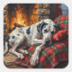 Pegatina Cuadrada Majestic Great Dane Asleep by Fireplace Cozy