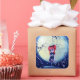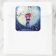 "Mal iluminado" Un chica gótico, parecido a una muñeca, con un violento crujido rojo en la cima de una colina surrealista bajo una brillante luna llena. Vestida con un atuendo oscuro adornado con cráneos y aferrándose a un conejito de puntillas, está rodeada de tentáculos a rayas blancas y negras que se retuercen a través de un cielo estrellado.
