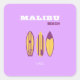 El diseño de arte de viajes que necesitas en tu vida. Es el lugar perfecto para disfrutar del ambiente relajado de la playa de Malibu. La estética de la playa y el color púrpura te harán feliz la vida.