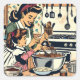 Una escena retro con una madre enseñándole a su hija cómo hacer un pastel no en un estilo de arte pop de historietas vintage.