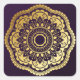 Pegatina Cuadrada Mandala dorada y púrpura