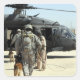 Manejadores de perros que trabajan en el ejército abordan un helicóptero equipado con helicópteros.