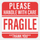 Pegatina Cuadrada Manejo Frágil con advertencia de cuidado