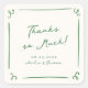 Pegatina Cuadrada Mano caprichosa Boda verde gracias