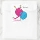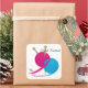 Pegatinas con una foto de dos bolas de lana de punto y agujas de tejido de madera que les salen a la luz. Ideal para todos aquellos artesanos a los que les encanta entrar en contacto con la lectura de texto Mano tejida por, y fácil de personalizar con un nombre personal.