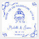 Unica mano azul caprichosa y escrita a mano Diversión Francesa Retro Contemporáneo guardar la fecha con un marco de arco, una llamativa obra de arte de moda para tu boda francés por Savanamm