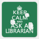Pegatina Cuadrada Mantener la calma y preguntar a una biblioteca