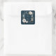 Pegatina Cuadrada Marco Cuadrado Moderno Floral Anémona Azul Marino
