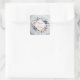 Pegatina Cuadrada Marco Floral Rosa Romántico Azul Dorado con Diaman